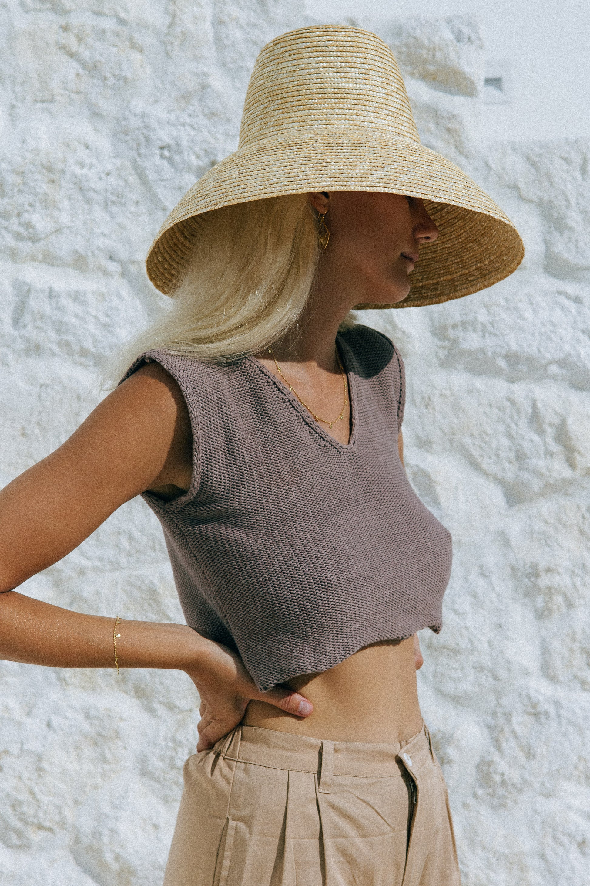 Our hand-knitted vest can be layered over a dress or worn as a top.